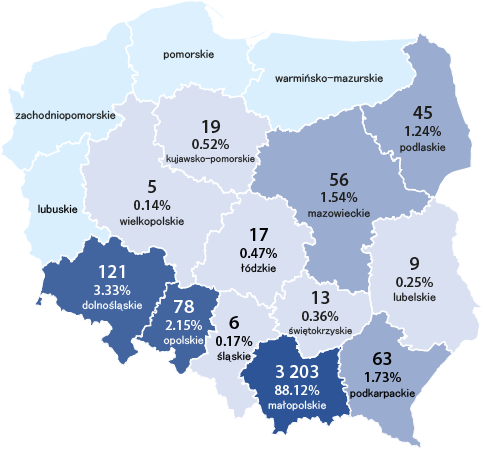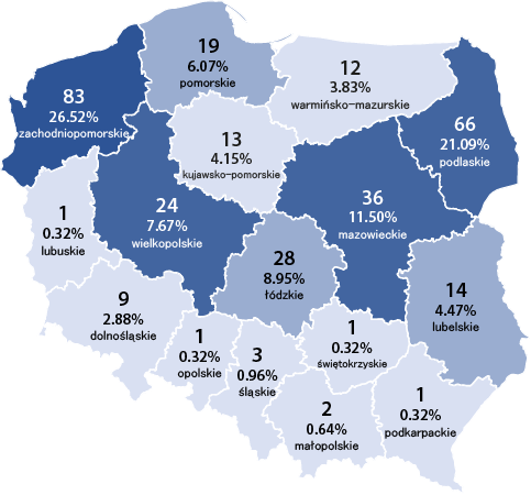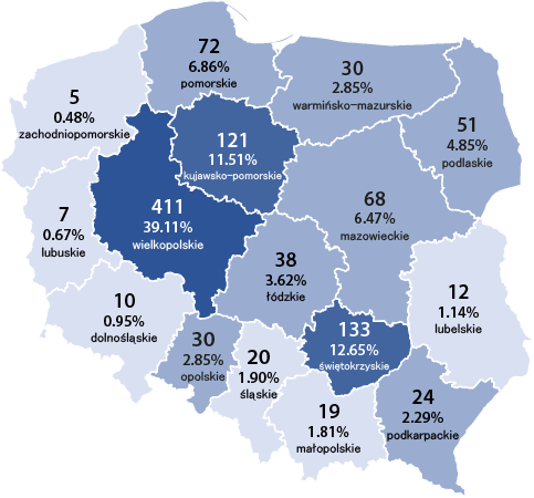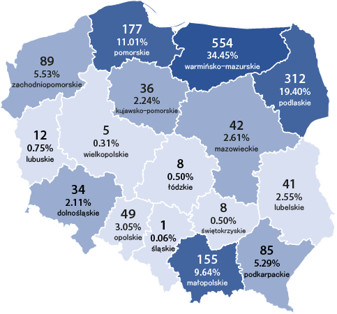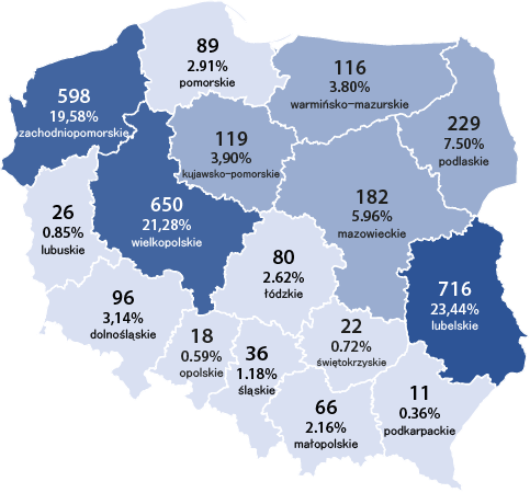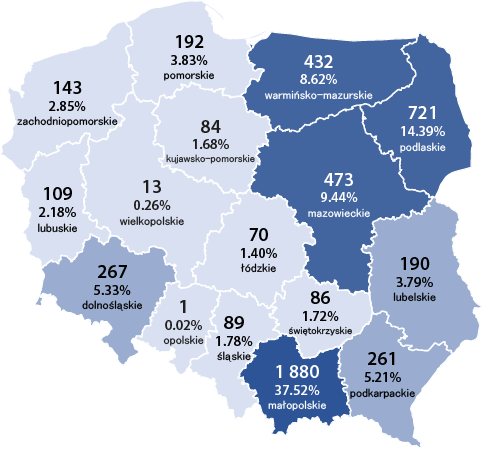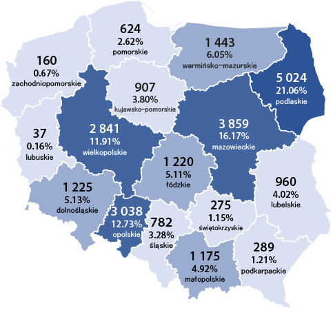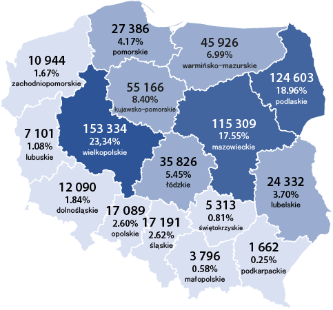 Stany krów wpisanych do ksiąg hodowlanych na dzień 31.12.2024 r. w poszczególnych województwach wg ras: