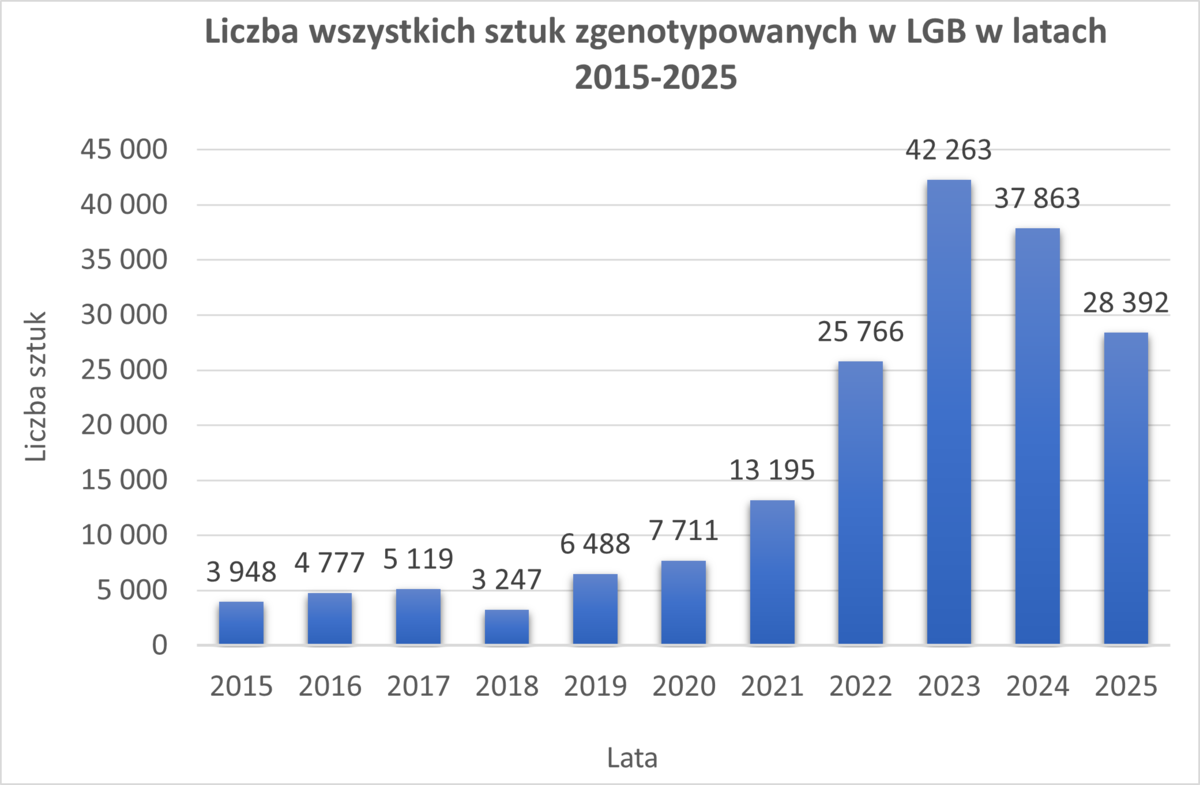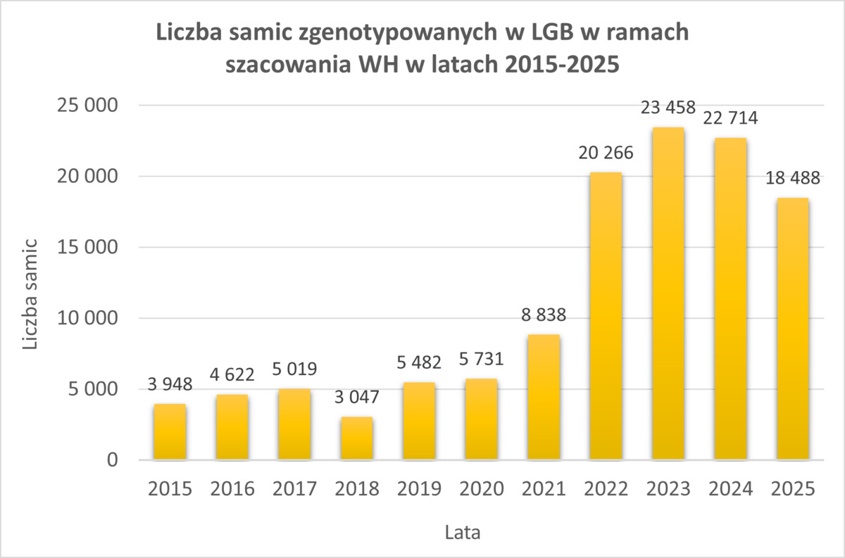 Laboratorium Genetyki Bydła Polskiej Federacji Hodowców Bydła i Producentów Mleka z/s w Parzniewie od początku swojej działalności do końca listopada 2025 roku zrealizowało 59 sezonów genotypowania zwierząt, w których zostało przebadanych 178 769 osobników. Liczba samic poddanych analizie w ramach szacowania wartości hodowlanej w latach 2015–2025 wyniosła 121 613 sztuk.